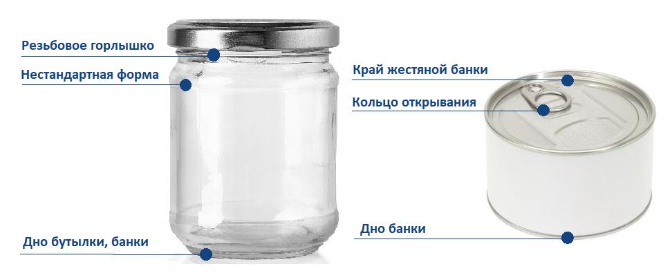 Система гарантирует обнаружение посторонних включений в зонах, недоступных для стандартного рентген-контроля. К таким зонам относятся дно стеклянных/металлических банок и бутылок, область крышек, колец для открывания, стенки и горлышко тары. Именно в этих местах традиционные системы контроля часто демонстрируют ложные срабатывания и пропуски.