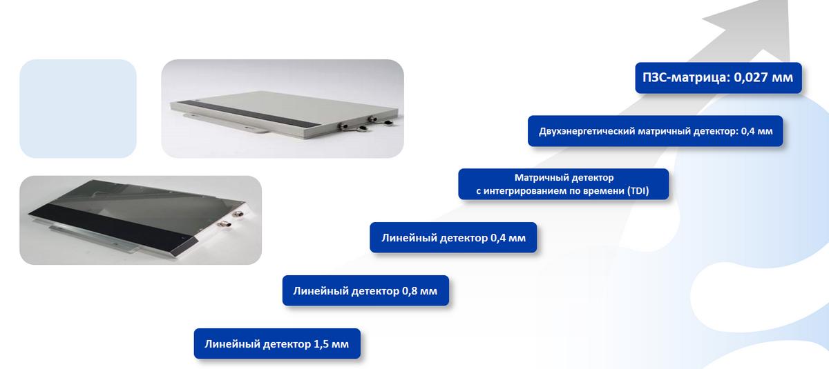 | Рентген-детектор: | Два генератора, три TDI детектора 0.4мм |