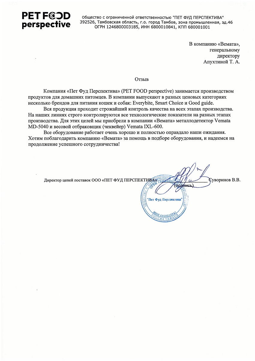 Пет Фуд Перспектива - российский производитель кормов для животных. В компании совместили лучшие мировые практики и отечественное сырье для собственного производства.